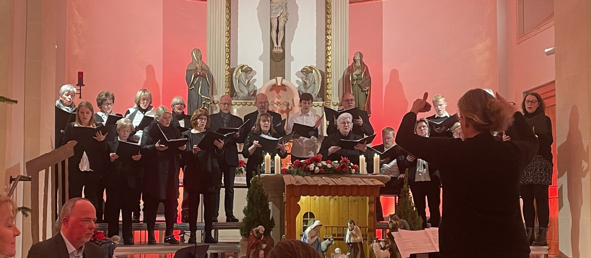 Neben den regelmäßigen Auftritten zu den kirchlichen Hochfesten steht ein Gemeinschaftsprojekt mit dem Jugendchor und dem Jungen Vokalensemble im Vordergrund: die Einstudierung der „Missa for You(th)“ des Komponisten Tjark Baumann aus Hamm, die in den Messfeiern am 28. September in St. Laurentius und an Allerheiligen in St. Johannes Baptist zur Aufführung gelangen soll. Das traditionelle Weihnachtskonzert soll Anfang 2026 erneut in der LichterHimmel-Kirche St. Laurentius stattfinden. Im August wird es wieder einen Chorworkshop geben, an dem jede und jeder Sangesfreudige teilnehmen und Einblick in die Probenarbeit gewinnen kann. Drei Sängerinnen wurden für 10- bzw. 15- jährige Mitgliedschaft geehrt, die Dirigentin Charlotte Kubasik für bereits 20 Jahre überaus erfolgreiche Chorarbeit. Pastor Andreas Zander und der Vorsitzende Edmund Hermwille dankten Frau Kubasik, den Jubilarinnen und allen Sängerinnen und Sängern für ihren Einsatz.