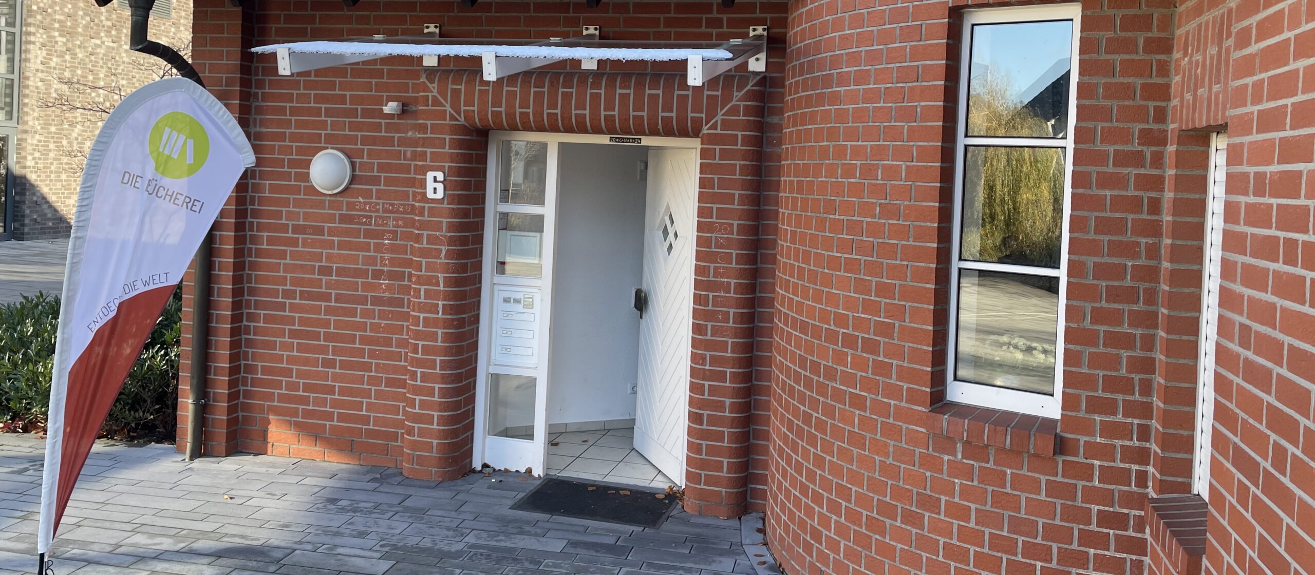 Die Fahne der Bücherei weht eine Woche lang