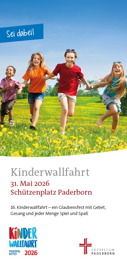 Wir laden herzlich alle Familien ein mit zur diesjährigen Kinderwallfahrt am Sonntag 31. Mai 2026 nach Paderborn zu kommen. Wir starten um 9.00 Uhr mit dem Bus am ZOB in Rietberg.
