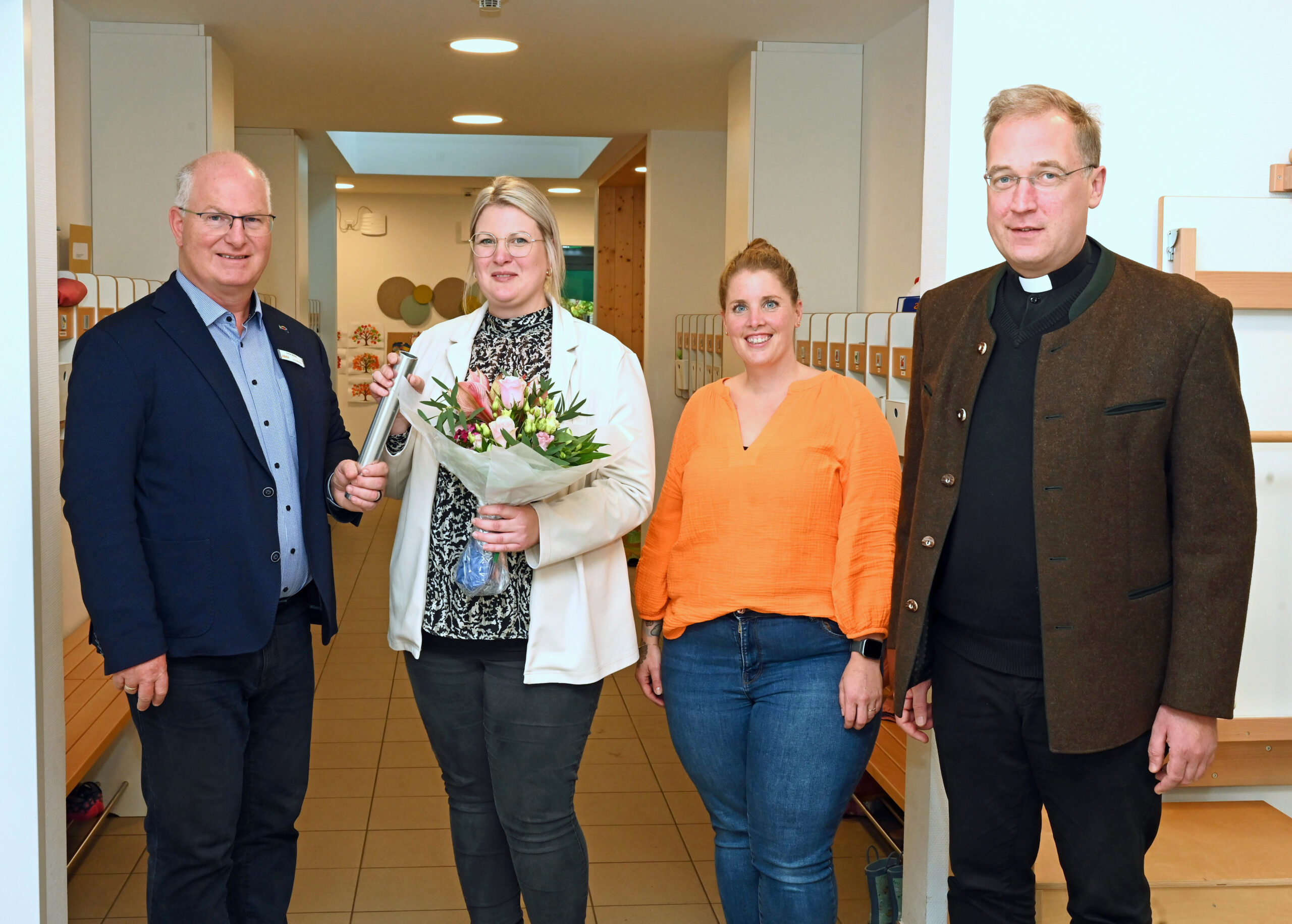 Müller dankte auch der stellvertretenden Leitung Caroline Köhler, die die Übergangszeit sehr gut gemanagt hat. „Das ist nicht selbstverständlich“, dankte er ihr mit einem Blumenstrauß. Sie hätte das gerne gemacht, sei aber sehr glücklich darüber, dass die kleine KiTa nun wieder eine tolle Führungskraft hat, die Harmonie und Sicherheit ins Haus bringe, meinte sie.