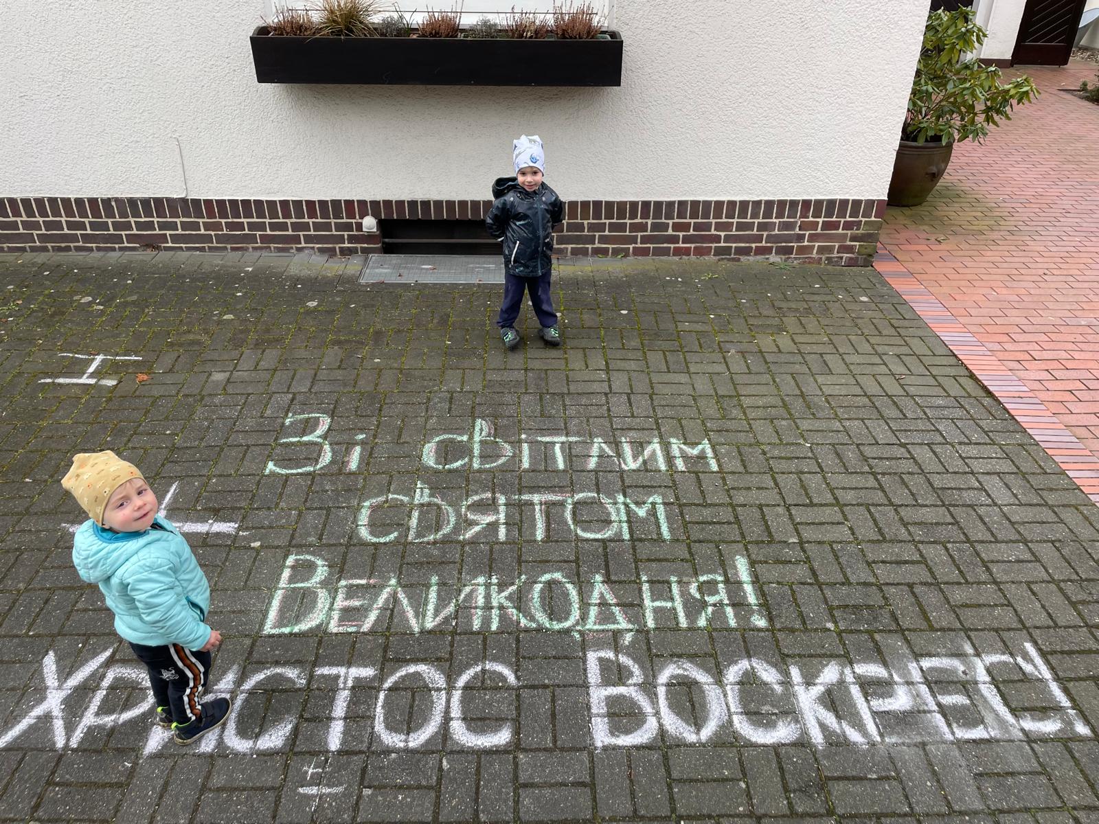 ukrainisch - dt. Übersetzung: "Ein großes Dankeschön von ganzem Herzen! Christus ist auferstanden!“