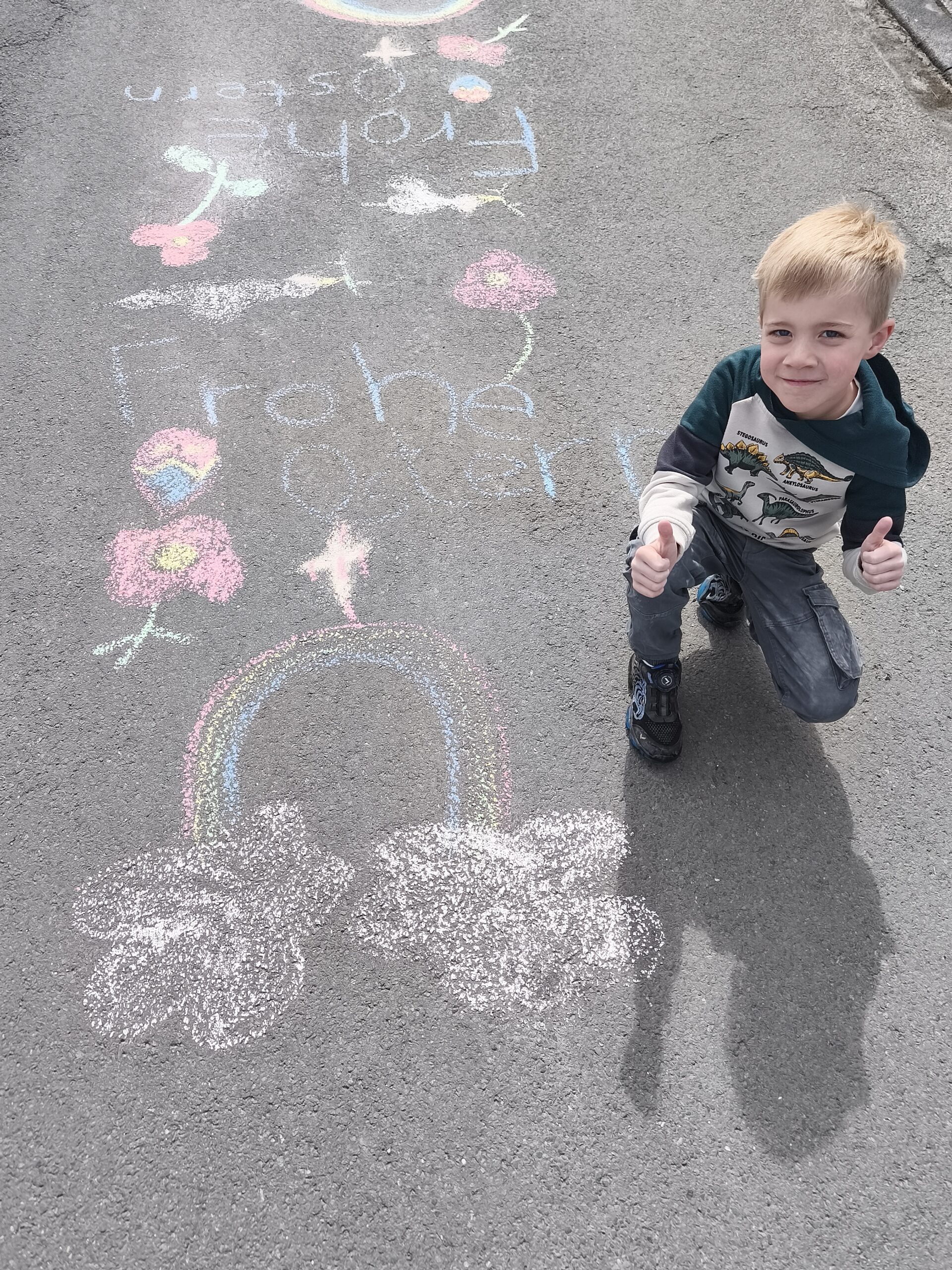 Wir haben die Kinder gebeten, überall auf den Straßen die Osterfreude zu verkünden: Der Herr ist auferstanden - Halleluja! Er ist wahrhaftig auferstanden - Halleluja!